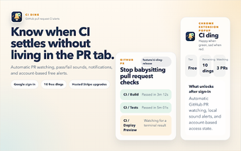 CI ding é uma extensão para o navegador Chrome que facilita o monitoramento de pull requests abertos no GitHub. Com funcionalidades como alertas sonoros e notificações, a ferramenta permite que os usuários saibam quando suas solicitações de pull estão prontas para revisão, eliminando a necessidade de monitoramento constante. O uso é gratuito, com a possibilidade de upgrade para planos pagos que oferecem alertas ilimitados.